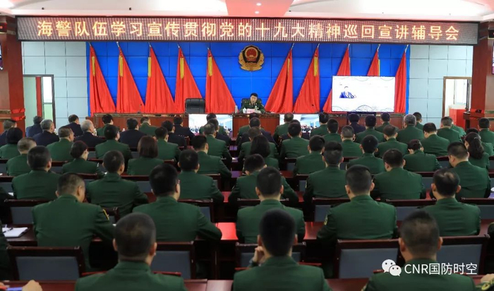 2017年11月,中国海警局副局长王秋彧率党委宣讲调研组深入海警基层单位,宣讲党的十九大精神并开展工作调研。