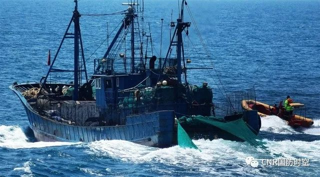 伏休期间,我执法人员查获正在违规作业的拖网渔船。