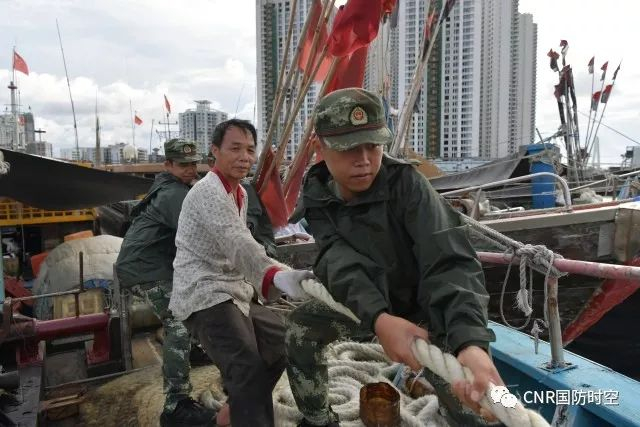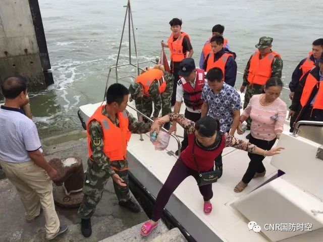 台风“卡努”登陆前广东海警三支队官兵将渔民安全撤离至岸上。