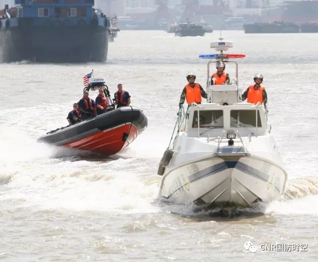 中国海警舰船与美国海岸警卫队飞机联合巡航。