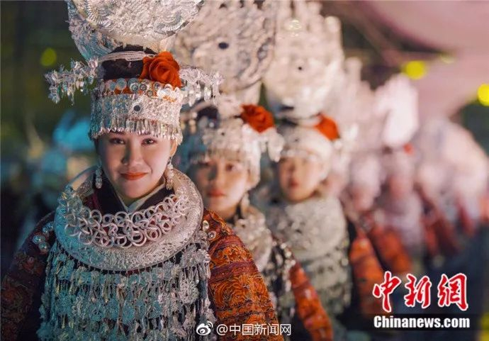 在2018年央视春晚黔东南分会场,有70名姑娘光穿衣时间就要4个小时,穿上后顶着三四十斤的服饰进行排练。她们都不敢轻易晃动,因为穿在身上的衣服是姑娘们出嫁的嫁衣,从出生起她们的妈妈就开始准备了,每一件衣服和银饰充满了家人对姑娘的爱与祝福。(@中国新闻网)