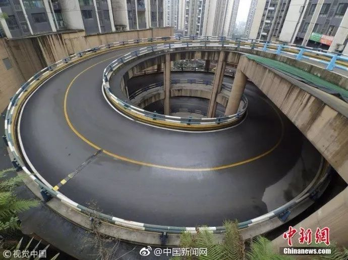 重庆江北区一居民小区,住户从主干道进入小区需上5层楼,连续旋转4个360°的圆圈。司机说2分钟内要转1440°的圈,头都要转晕。网友:又想骗我去重庆!(图/视觉中国)
