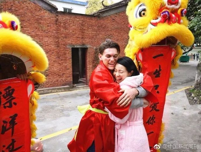 外国小伙舞狮求婚中国女教师,接地气!