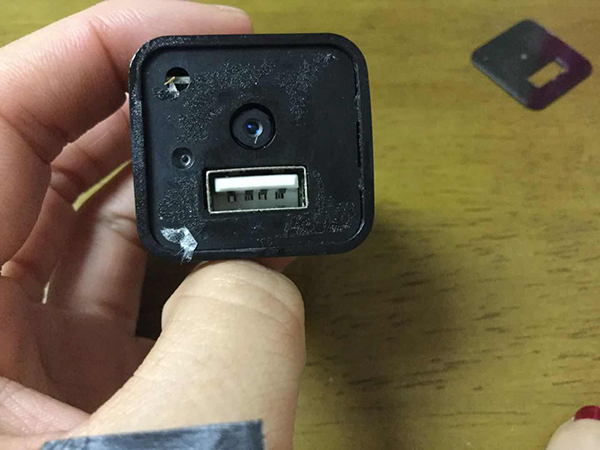“以前就偶尔看见过,但我一直以为是一个充电器,没有很在意,”赵倩向澎湃新闻回忆说,“那天晚上九点左右洗完澡换衣服,离镜子比较近,我感觉不太对劲,发现跟我的手机摄像头有点像,就把它拔下来带回了寝室(检查)。”