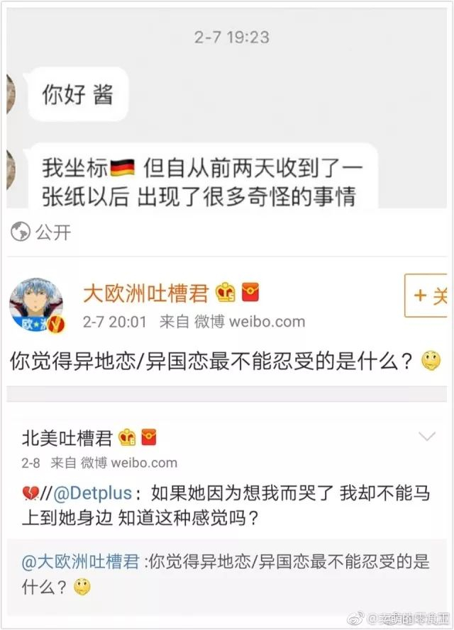 并且还有一个细节也被眼尖的网友给找到了,在@Detplus给@大欧洲吐槽君私信投稿半个小时之后还去转载了一次@大欧洲吐槽君的微博,更奇怪的是,另一知名博主@北美吐槽君竟然转发了@Detplus的这条微博。