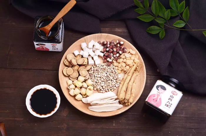 怀山药,健脾益胃、助消化,滋肾益精,益肺止咳;人参,复脉固脱、安神益智;茯苓,便溏泄泻,惊悸失眠;薏米,利水消肿、美白肌肤;杏仁,止咳润肺、降低胆固醇、抗肿瘤;芡实,益肾固精,除湿止带;炙甘草甘平,益气和中,调和诸药。