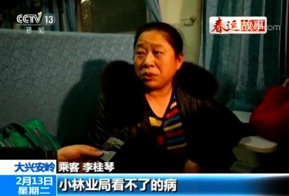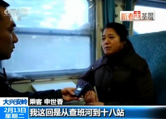 乘客 李桂琴:家里十八站(车站名),小林业局看不了的病,我们就得(坐这趟车)上地区去看,方便群众。你看有的时候(上下车)人少,我们那都是小地方小林业局没有多少人,不过能有这趟车我们挺感谢共产党的,真的很好。