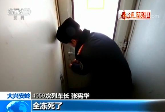 4059次列车长 张宪华:全冻死了,这个就得在外边踹,搁脚适当的力量,把它能踹开。你要不把它卡住,旅客上下车他就不安全。