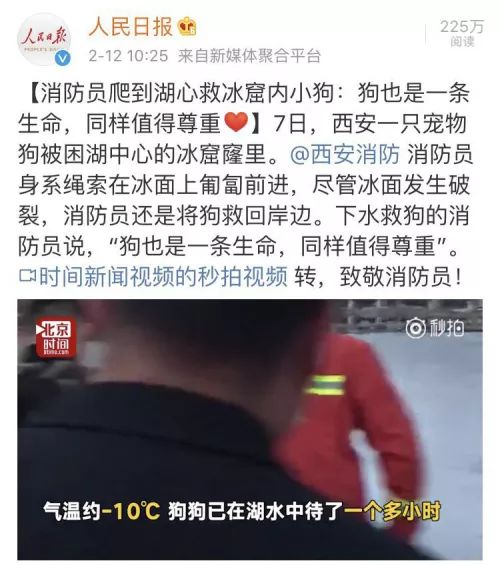 大冷天消防员在冰湖救狗!到底该不该?网友们吵翻了…