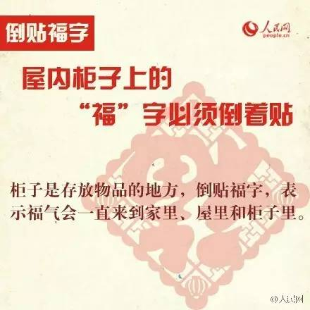 所以,此前,很多人以为福字要倒着贴,取“福到”之意,但这个讨好彩头的说法只适合少数情况,例如水缸和柜子。
