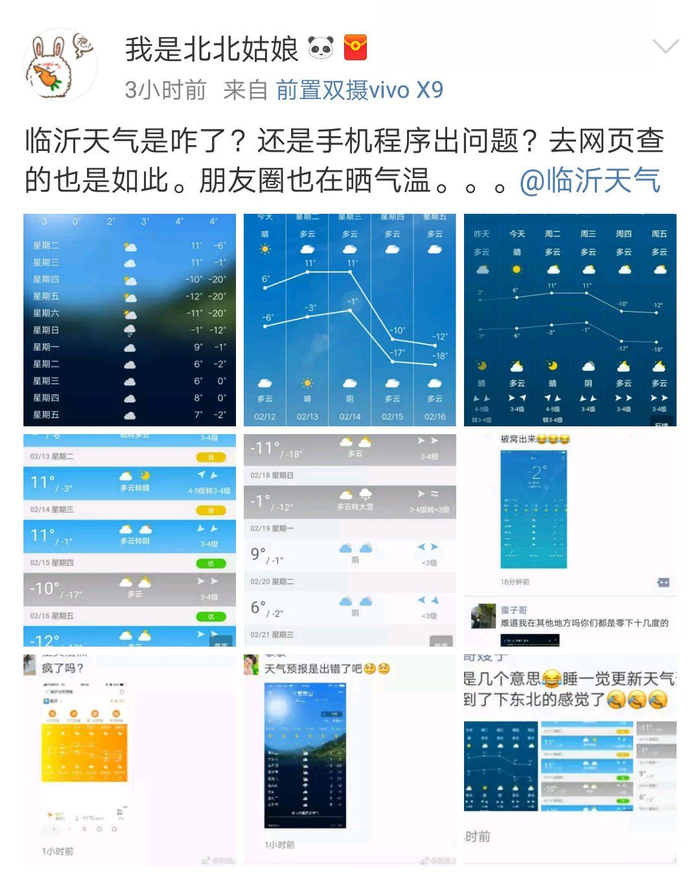 天气预报显示,临沂、菏泽最高温却降到冰点以下-12℃!