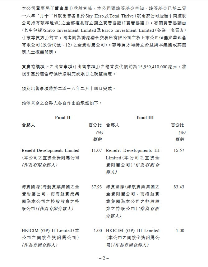 200亿远不够还债的,那...继续卖地吧。2月12日海航旗下香港国际建设投资管理集团有限公司在香港联合交易所发布公告,该公司拟以160亿港元价格将启德地块出售给恒基地产旗下公司。