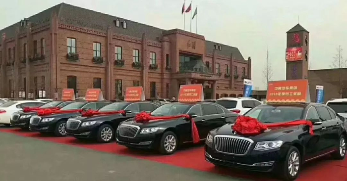 “2018年度员工奖励是一辆价值31.98万的红旗轿车。”2月13日,保定市民李先生将这张照片配文字传到朋友圈后,引发众多留言和点赞。记者采访得知,这是保定中冀汽车集团年会上的照片,共有五辆红旗轿车作为2018年优秀员工的奖品,每辆价值31.98万元。