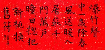 第一句写春节燃放爆竹的习俗。这种习俗由来已久,最早是用火烧竹,竹子炸裂发出巨声,用来驱除山鬼和瘟神,故称“爆竹”。火药发明后,出现用硝石、硫磺和木炭等填充在竹筒内制成的“爆仗”,后来又改为用纸包裹火药。到宋代,民间开始普遍用纸筒和麻茎裹火药编成串做成“编炮”(鞭炮)。节庆日燃放鞭炮爆竹的习俗,历千百年,至今未断。一岁除,指旧的一年过去了。除,逝去。起句斩截明快,气势不凡,成为描写春节的名句。