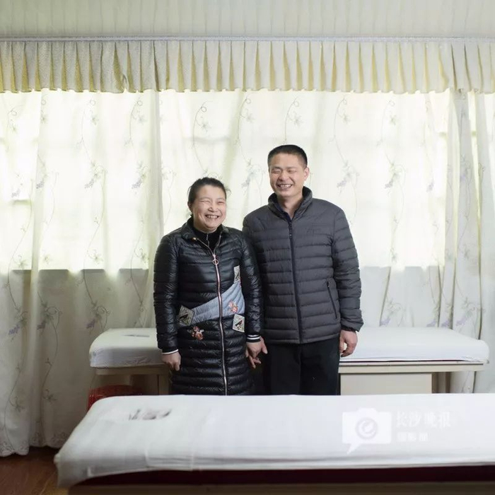 今年34岁的易耀文是从14岁开始视弱。在盲人康复按摩医院工作的时候,吴芳是易耀文的导医员。那时候,只要自己一闲下来,他就会帮助吴芳整理卫生。他的踏实肯干和照顾人,让吴芳觉得他是一个可以托付一生的人,吴芳不顾家人的反对,和他结为夫妻。现在两人经营着一家社区盲人康复按摩店。