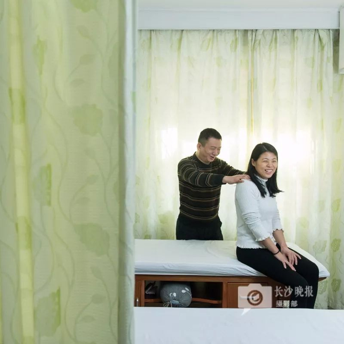 于阳辉视力变弱之前,是一家汽修店老板。2010年,不忍妻子独挑家庭重担,于阳辉克服了内心障碍,开始学习盲人按摩。现在两人在位于麓谷的自家楼下,开了一家盲医诊诊所。