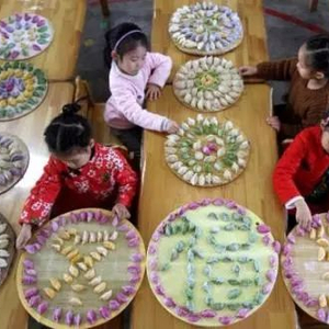 资料图:小朋友们在老师的带领下,用各种蔬菜汁和成彩色面团,一起包出多彩饺子,感知传统民俗文化。 中新社发 胡高雷 摄 图片来源:CNSPHOTO