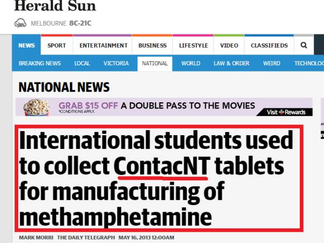 但是这人手一个的感冒药, 也曾将中国留学生送进灾难! 中国留学生此前因携带康泰克入境 而遭到逮捕的案例 屡见不鲜! 当时, 澳洲当局缉获了1.3吨走私入境的感冒药康泰克(ContacNT), 它们预计可以制作成400公斤的冰毒, 批发总价值大约为7800万元, 街头价值则高达3亿元。
