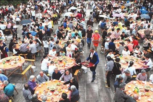 百家宴是独特又古老的传统民俗文化,由最初的“做春福”发展而来,是一种在族人内部举行的祈祷仪式,其目的是“聚宗亲,商族事,祈丰收,保平安”。