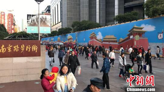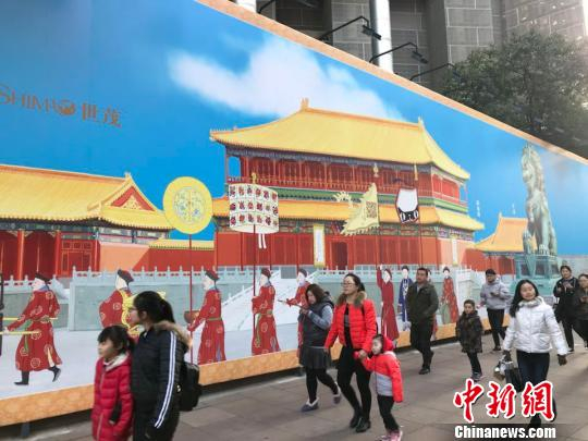 (新春见闻)上海南京路步行街现巨幅“故宫画卷”