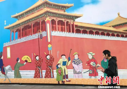 中新网上海2月14日电 (王子涛)一幅近1000平方米的巨幅“故宫画卷”近日出现在上海南京路步行街。巨幅“故宫画卷”将现代都市和古代故宫景观奇妙融合,给市民游客别样的新春体验。