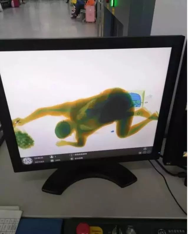 2017年4月7日,@安徽铁路公安在线 发博讲了这样一件事:安徽六安县金寨火车站,一个人影突然出现在安检仪显示屏上,把民警吓了一跳。