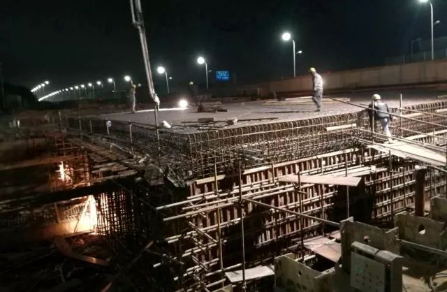 工人们正在连夜加紧施工