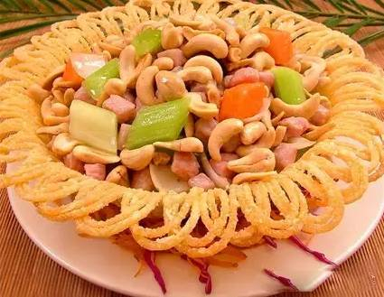 年夜饭上了鸡鹅鱼虾,最常吃的猪肉也不能缺席。腰果得现吃现炒,如果炒来摆放过久,腰果会受油浸变软,不够香脆。