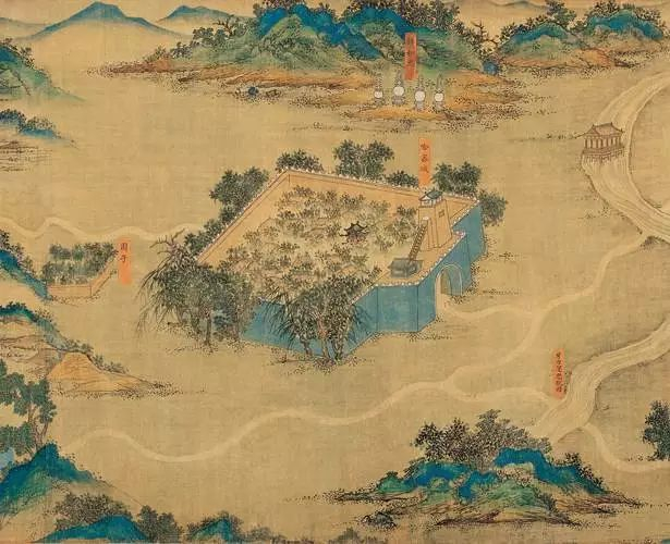 从视觉艺术的角度欣赏,这幅地图由宫廷画家以明代中叶吴门画派风格的青绿山水技法绘制而成,可称是古代千里江山图的典范。