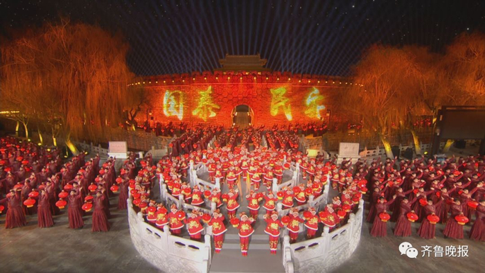 除了节目创作寓意深远和演员阵容引人注目外,山东分会场的节目包装也令人耳目一新。万仞宫墙结合投影和虚拟技术,将古朴的建筑辅以现代化的时尚表达。