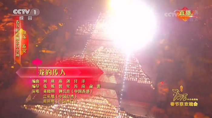 在泰安分会场,黄晓明、钟汉良、言承旭、夏利奥一起演唱歌曲《龙的传人》。