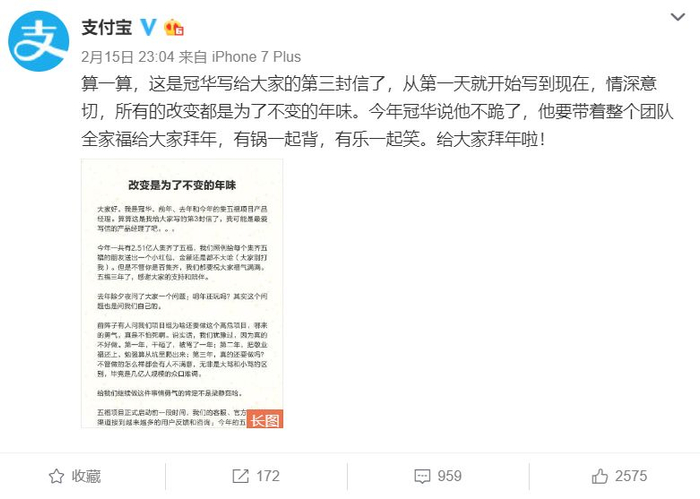 在这些引导之下,今年参与集五福活动的网友似乎满意度还不错。有网友留言:尽管最后的钱不是很多,但是过程也算是给现在的年增添了年味,希望支付宝春节红包项目负责人冠华以后可以做的更新颖。