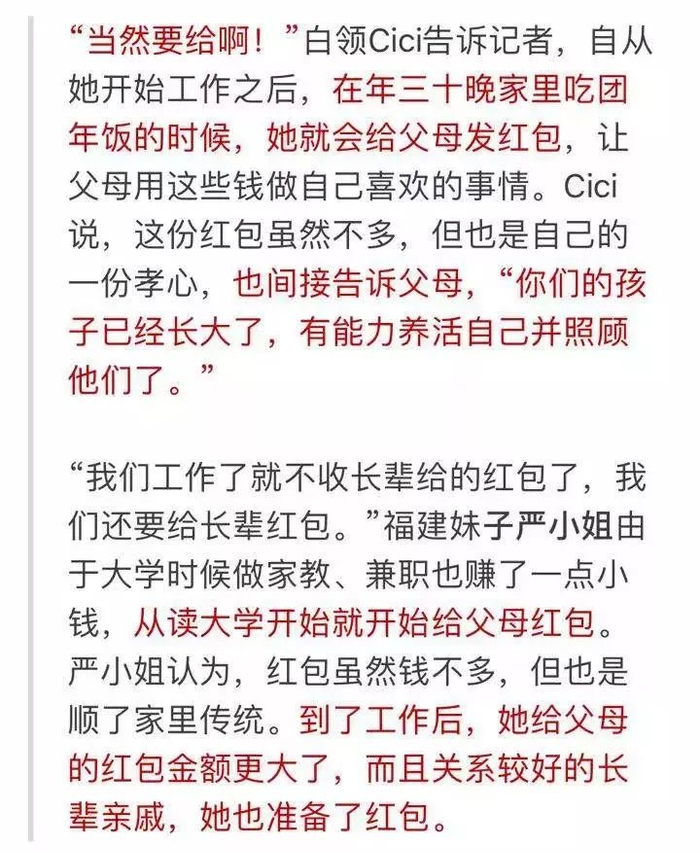 正如吴先生所言,很多父母收了红包之后,转过头来就给回孩子了。