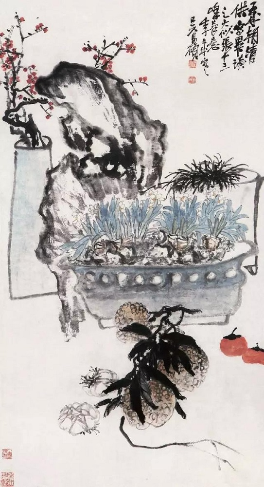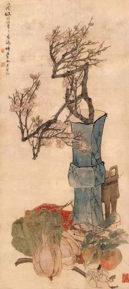 清中后期,“岁朝图”在书画领域很是盛行,画家们以清供之品入画,兼工带写,敷衍成诗,使之成为图文并茂的文人画。这一风气在扬州画派和海上画派中尤为兴盛,许多画家都创作过“岁朝图”,有代表性的就有李鳝、赵之谦、任伯年、吴昌硕等。