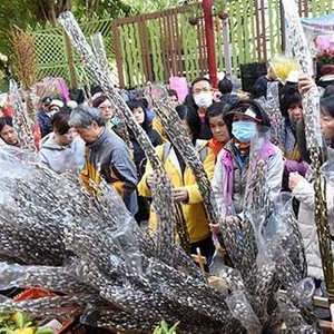 新春祈福是港人过春节的传统节目,其中到大埔林村许愿树许愿,拥有逾百年历史。人们把新年的心愿,写在“宝牒”上,然后拴在橘子上,甩向许愿树的树枝。如果“宝牒”成功挂在枝头,就意味许愿成功,“宝牒”抛得越高,愿望就越容易实现。