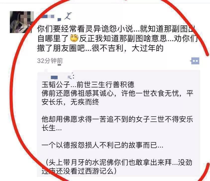 不过,马上就有人出来“辟谣”,说这张图片里的佛像是“地藏菩萨”,拜“地藏菩萨”并没有保佑家人平安的意思……
