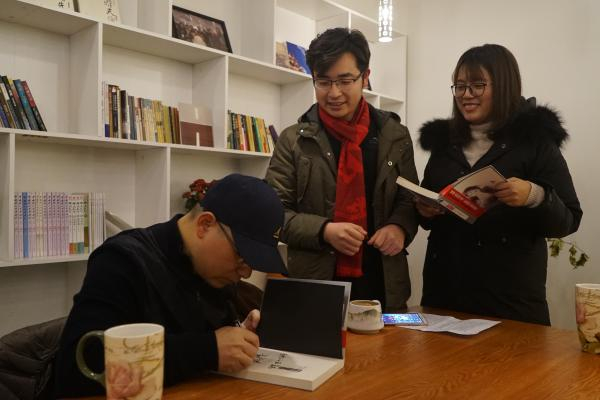 树下野狐为读者签书