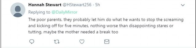 “我觉得孩子的家长很可怜啊,他们真的应该满足这个孩子的需求,让他冷静五分钟,试想一下全飞机的人都用一种责备的眼光和啧啧的声音来评价你的时候你是啥感觉?那个妈妈也需要一点休息时间吧!”