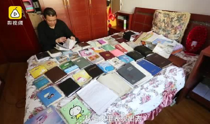 西安60岁的李福昌坚持写日记30年,目前已写了60多本,加起来有200多万字,可以铺满整个双人床。他的日记里,大多是记录妻子的点滴。他说:“男人的最高境界是把妻子当女儿养,而不爱你的男人,是把妻子当妈一样。”