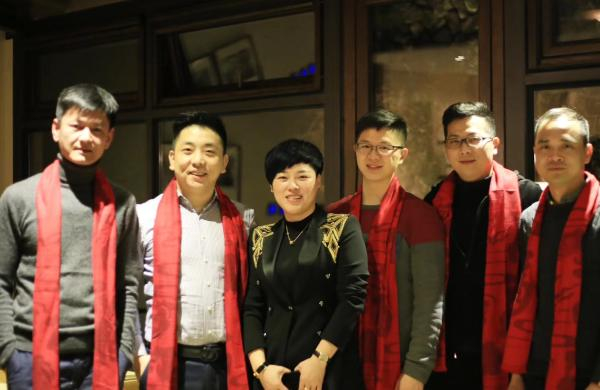 2018年春节前,鲍洪权(左二)与阿城(左四)等童年老宅改造的莫干山三秋美宿