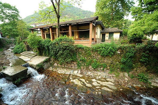 吕晓辉的工作室位于两条溪流交汇处,原是民国时期莫干山小学图书馆