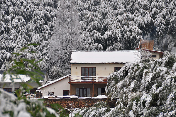 驱车行驶在莫干山中,大大小小的村舍房屋散落在覆着白雪的峰峦翠谷之间,其实远看已很难辨认哪里是“洋家乐”,哪里是民宿。