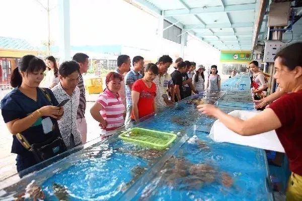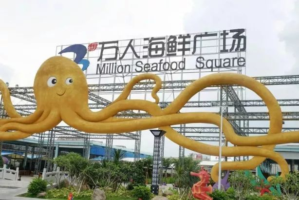 这个海鲜广场,不得了啦!是按4A景区标准建设,总占地面积160亩,设有海鲜平价超市、游客自助用餐区、集散广场、生态停车场、海洋文化展示馆以及儿童游乐场等配套设施,可容纳12000人就餐。其中,海鲜加工档位88家、小吃档位40家、海鲜零售档位150家。