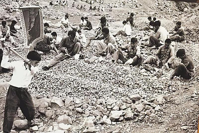 攀枝花建设之初,来自祖国各地的建设者们在平整土地。
