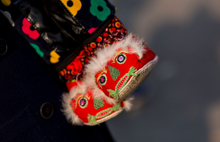 2018年2月16日,三门峡大张广场。逛街看到孩子穿的虎头鞋,随手拍下。丁健 摄