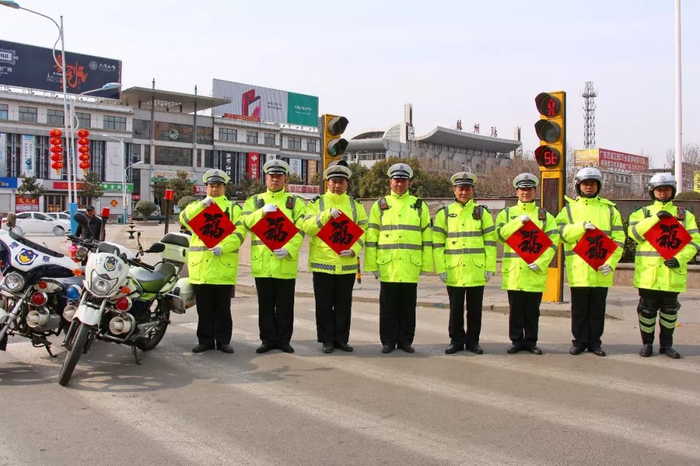2018年2月16日,山东省滕州市火车站。中国鲁班的故乡,山东滕州大年初一,执勤交警正在录制新春祝福视频。1516 摄