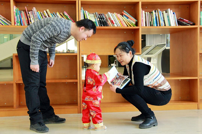 2018年2月16日,沈阳市辽宁省图书馆。大年初一,爸爸妈妈带孩子到图书馆,感受书香文化。田喜儿摄