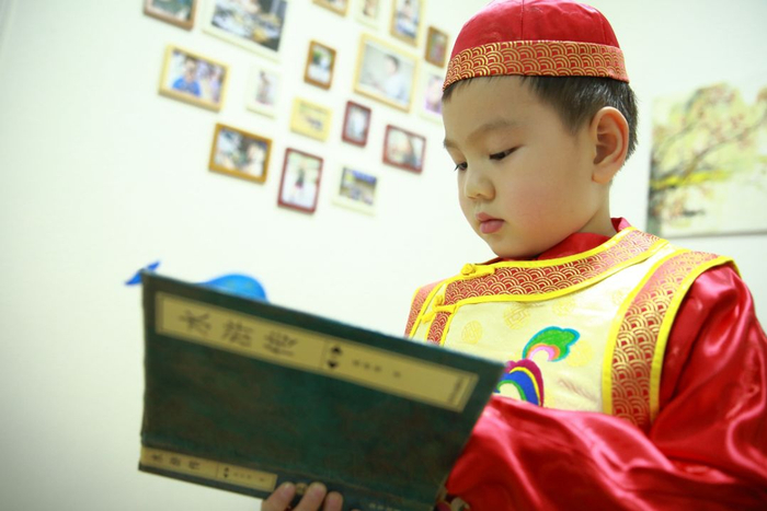 2018年2月10日,北京。小小子爱读书,过节收到好礼物,书香漫新春,传承好传统。月份牌 摄