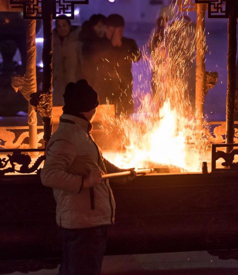 2018年2月15日,山东庆云县。除夕夜逛庙会,为新年祈福,是当地的一个文化旅游项目。张洪举 摄