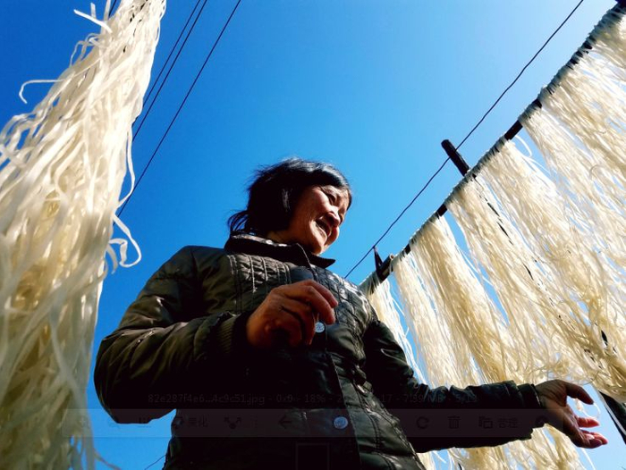 2018年1月20日,河南三门峡。猪肉豆腐粉条是过年少不了的三大样。村民正晾晒刚做好的手工粉条。刚子 摄